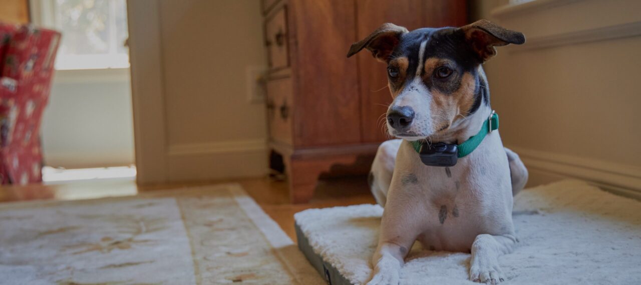 DogWatch Indoor Pet Fences emit a radio signal that is detected by the receiver collar worn by your pet—the same way the outdoor hidden fence systems work. As your pet approaches the signal field (initially marked with a series of flags to help your pet identify the area), the receiver collar begins to emit an audible (or vibration) warning beep. If your pet goes beyond the warning zone, the warning is quickly followed by a ‘correction’— a mild electrical stimulation from the receiver collar. With proper training, your pet will quickly learn to stay away from areas that he associates with the warning.